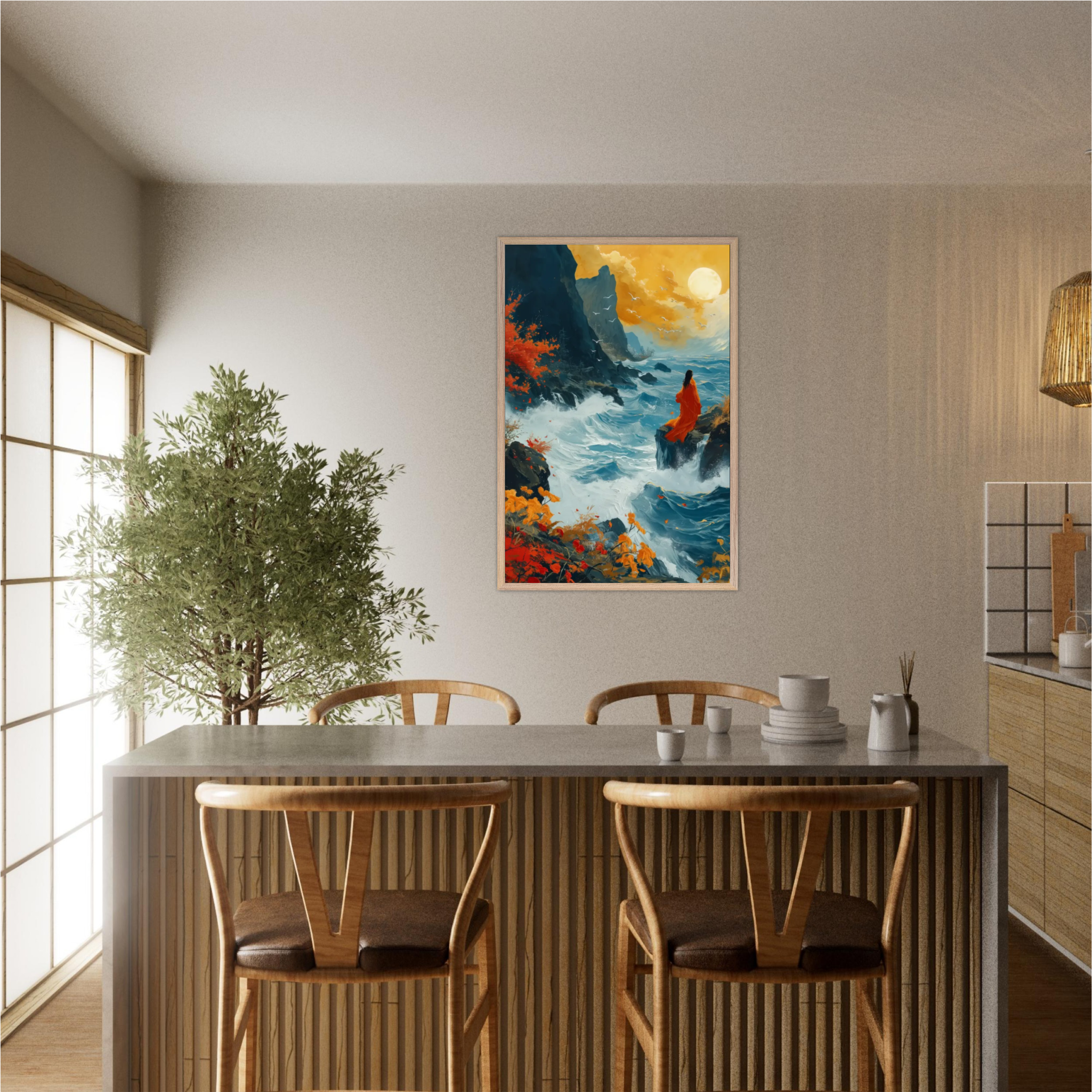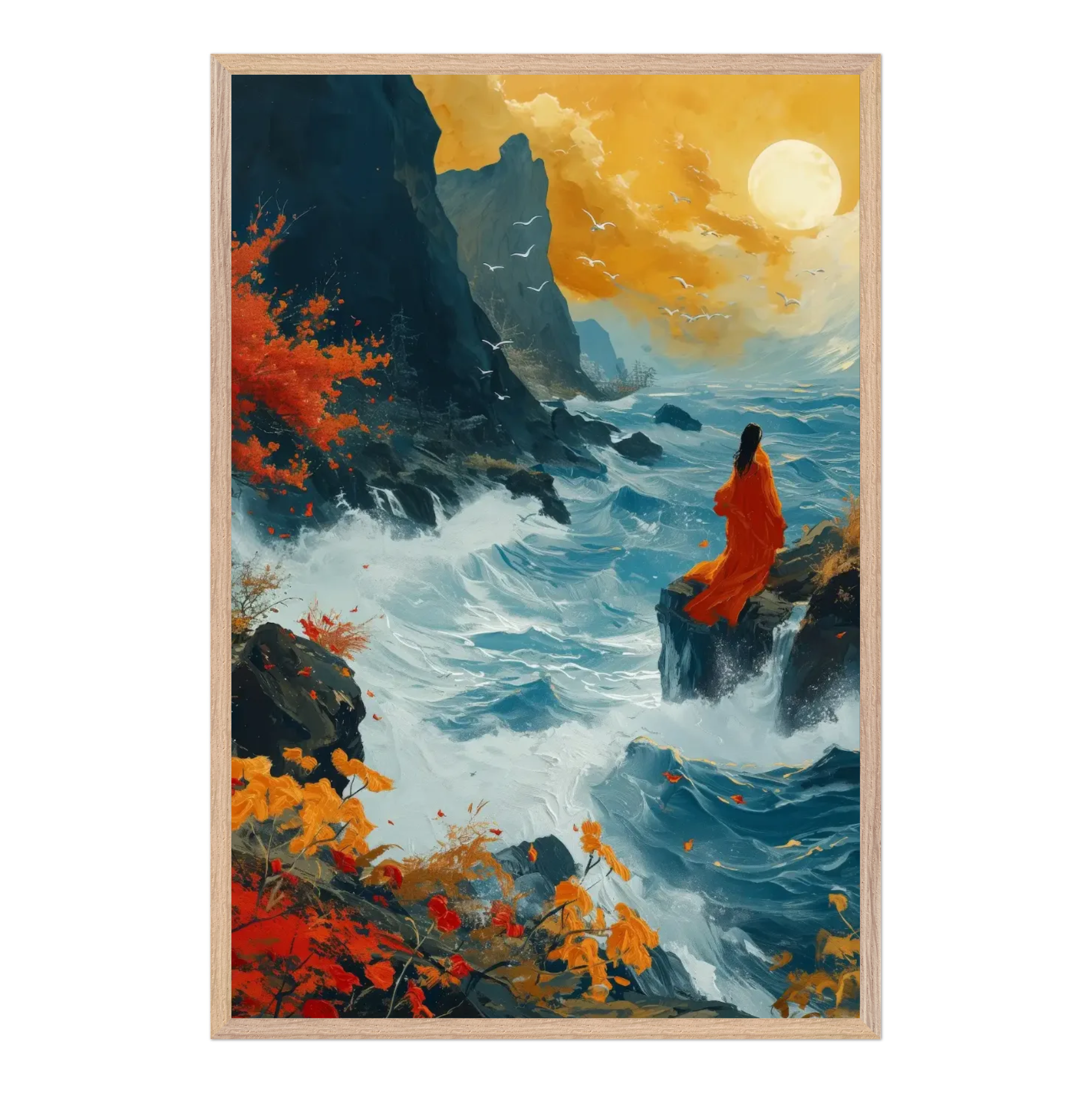 Our ready-to-hang wooden frames, expertly crafted from responsibly sourced oak or ash, showcase rich, distinctive wood grains that enhance each artwork’s beauty.