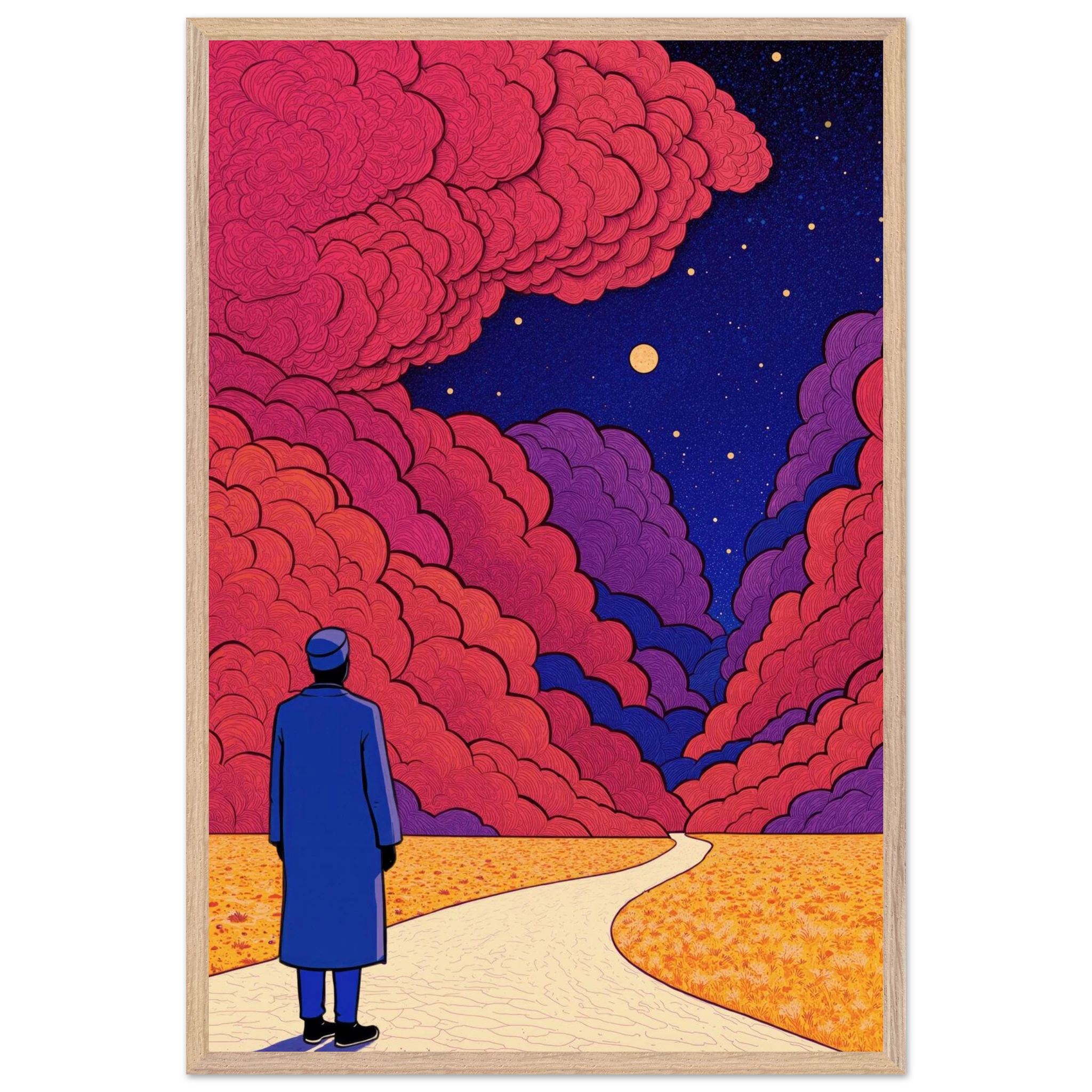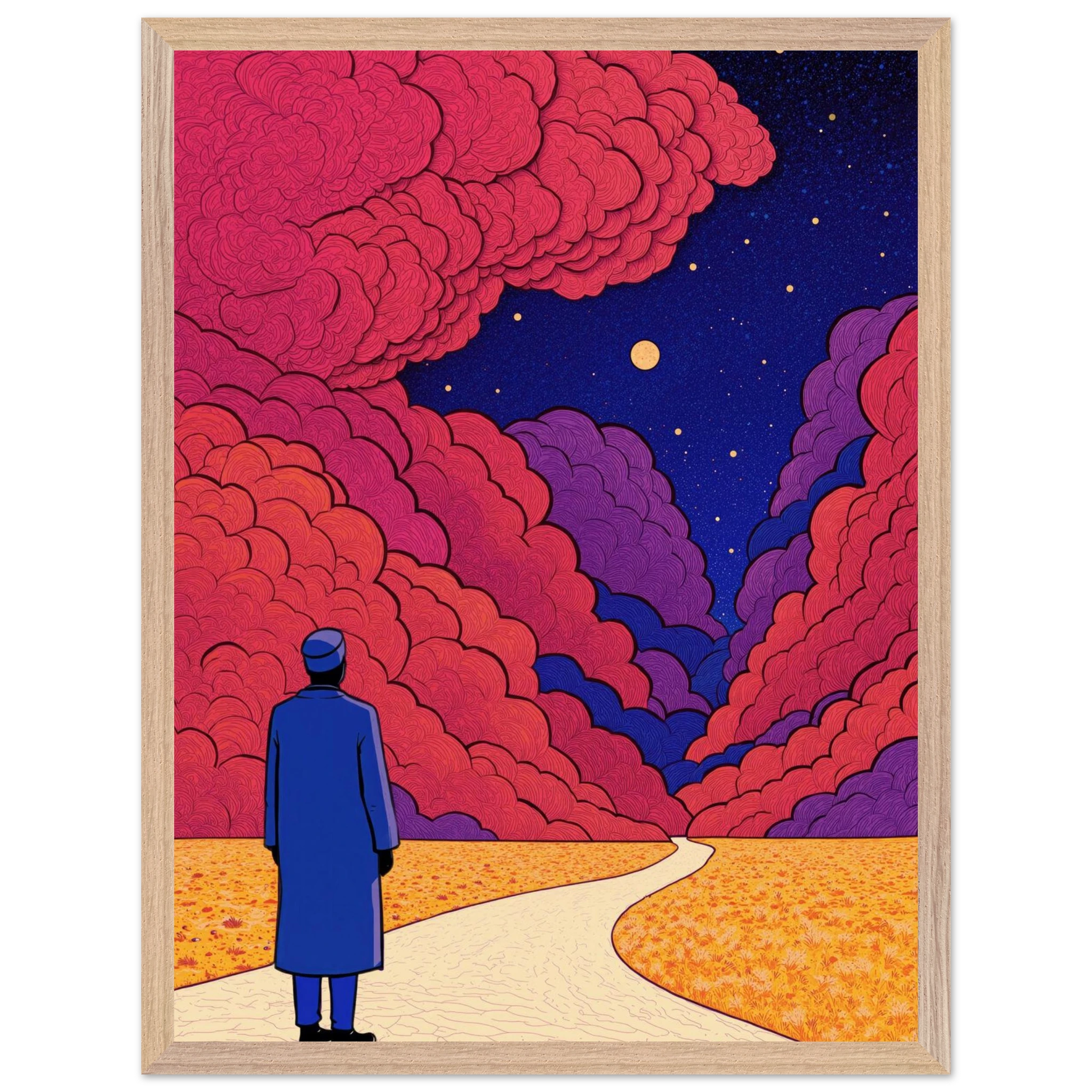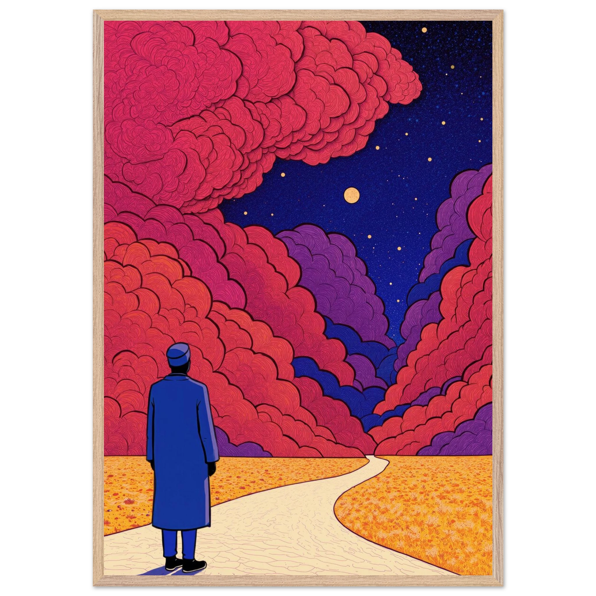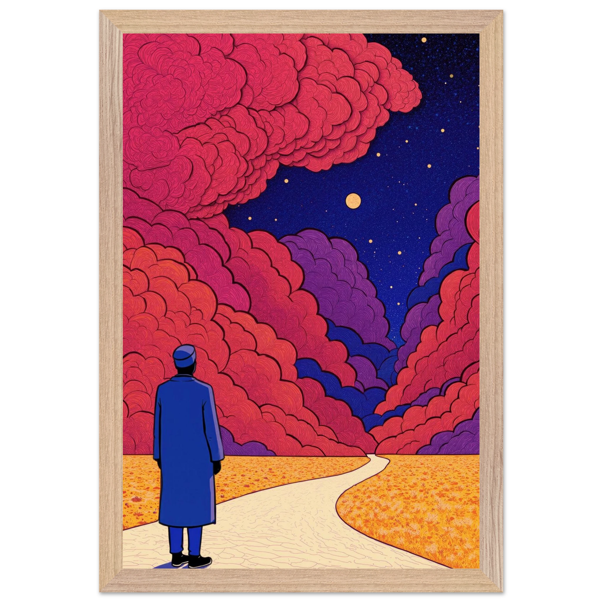 Our ready-to-hang wooden frames, expertly crafted from responsibly sourced oak or ash, showcase rich, distinctive wood grains that enhance each artwork’s beauty.