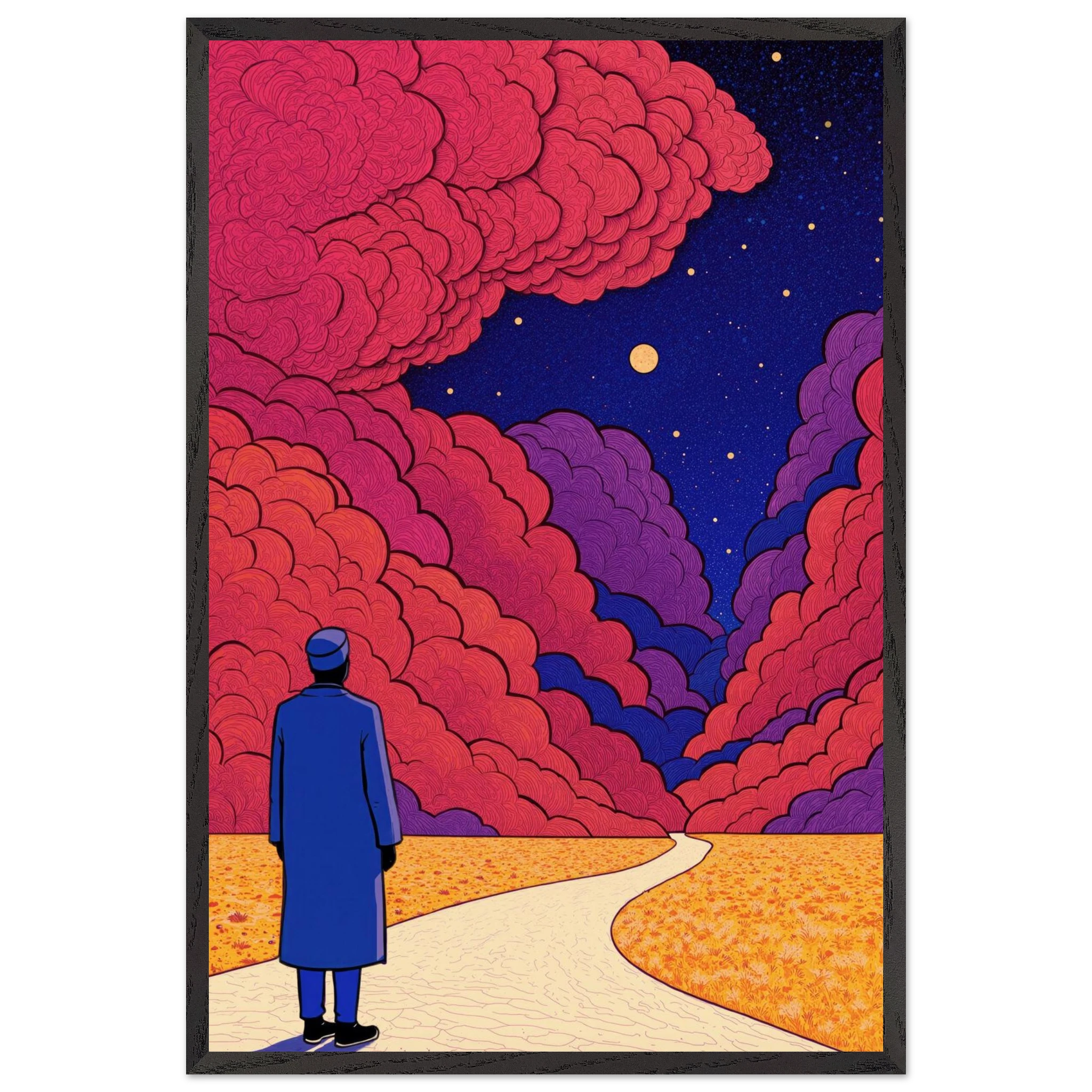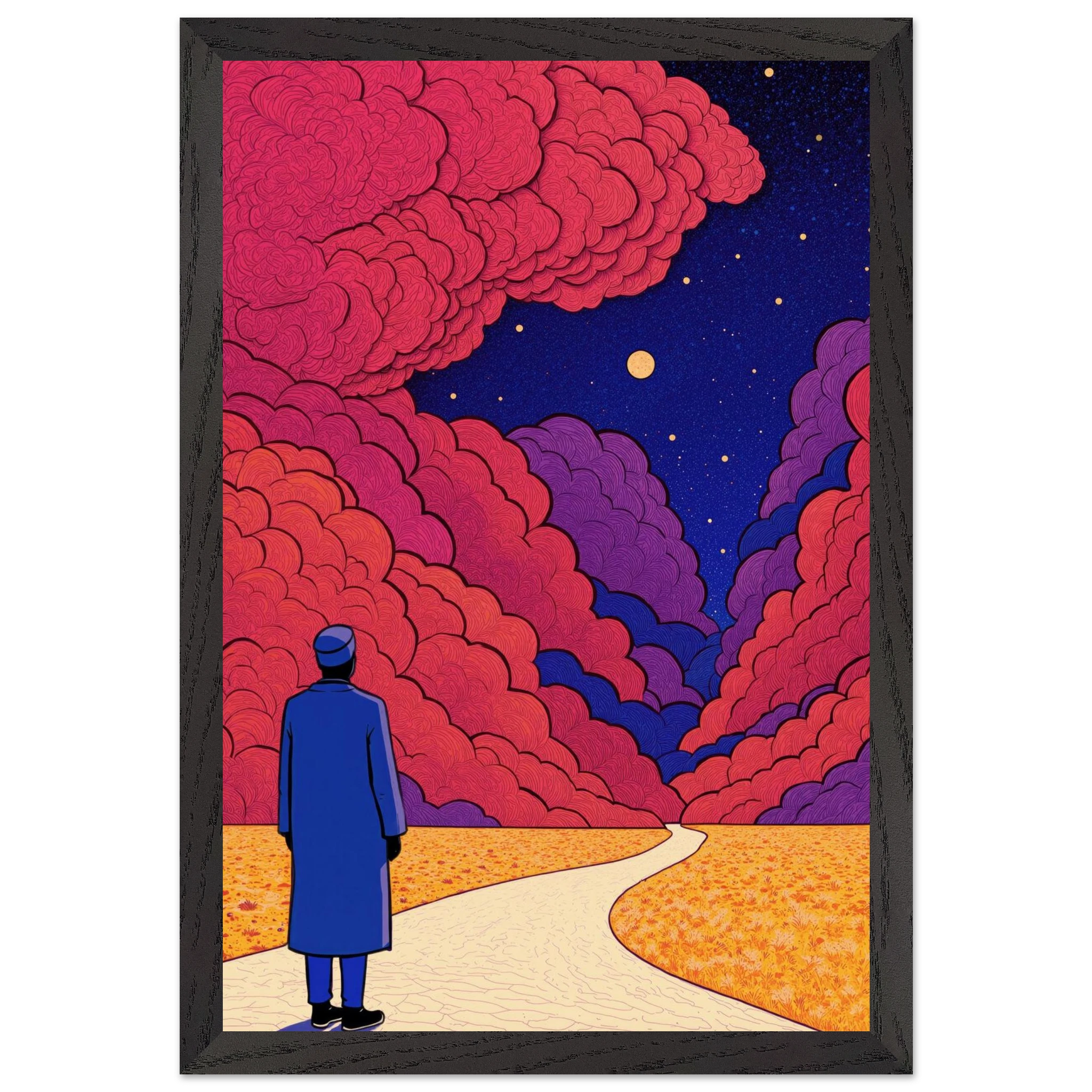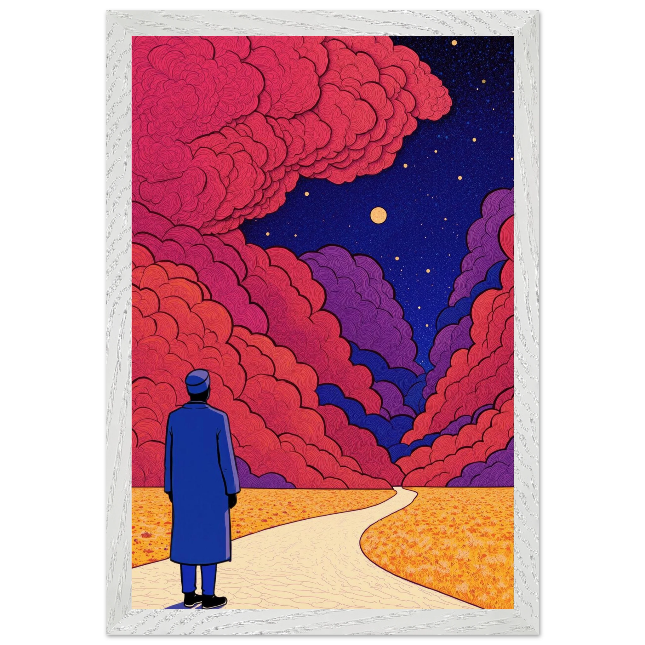 Our ready-to-hang wooden frames, expertly crafted from responsibly sourced oak or ash, showcase rich, distinctive wood grains that enhance each artwork’s beauty.