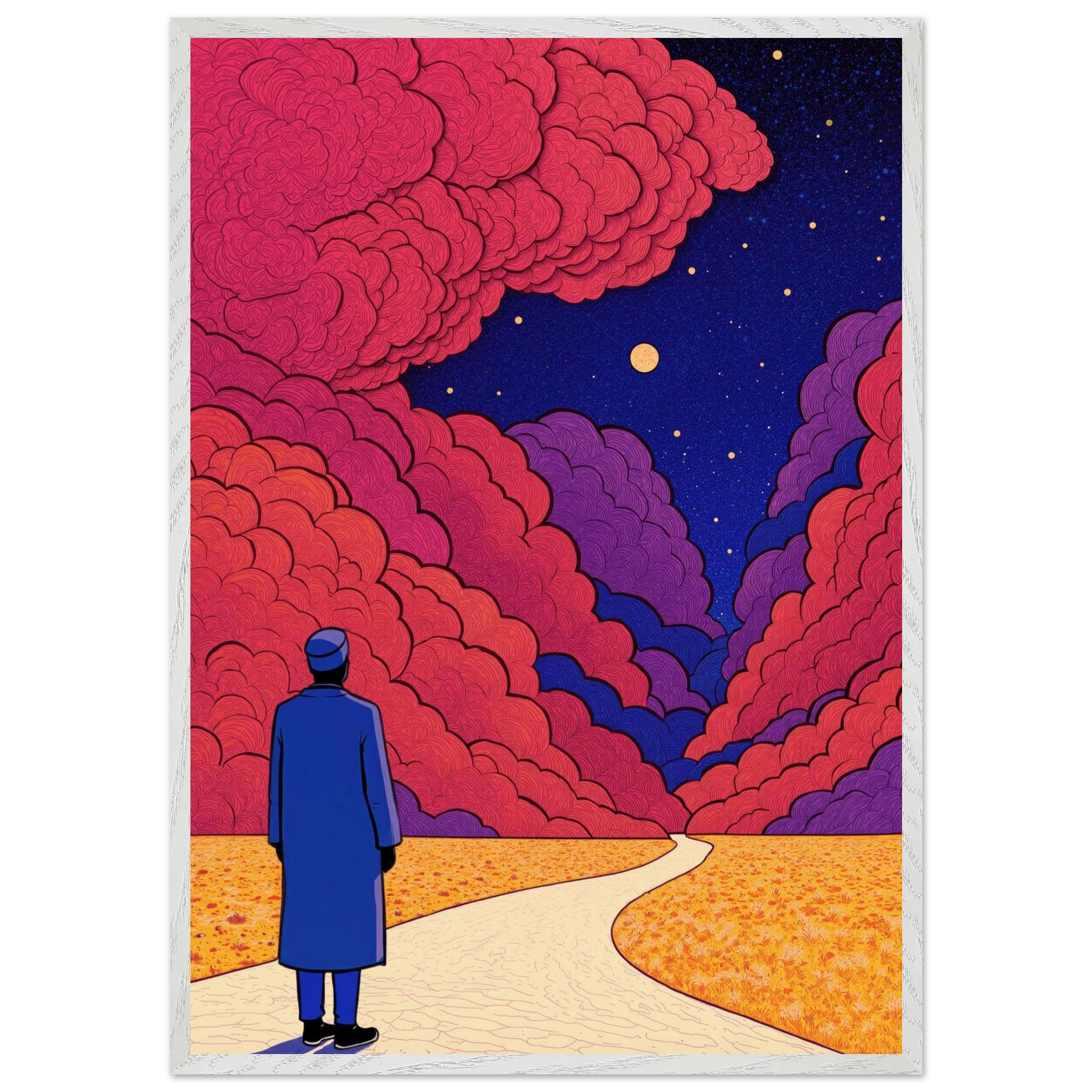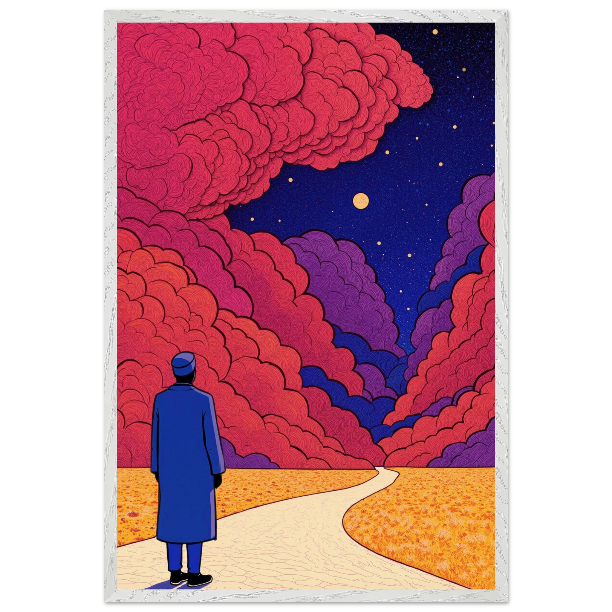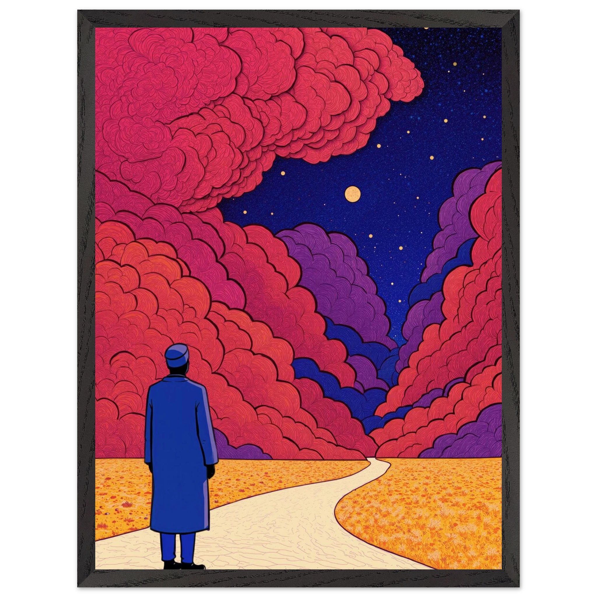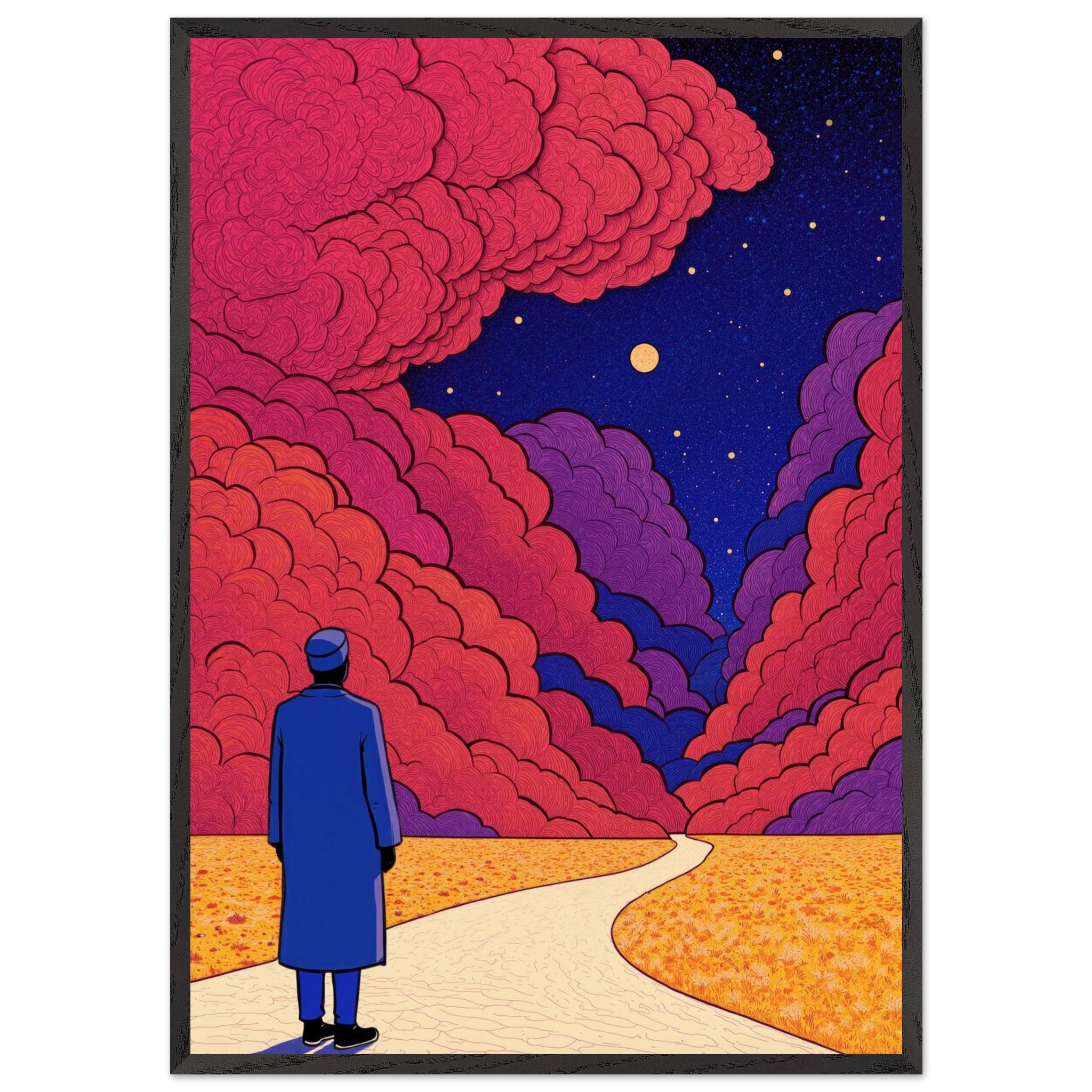 Our ready-to-hang wooden frames, expertly crafted from responsibly sourced oak or ash, showcase rich, distinctive wood grains that enhance each artwork’s beauty.