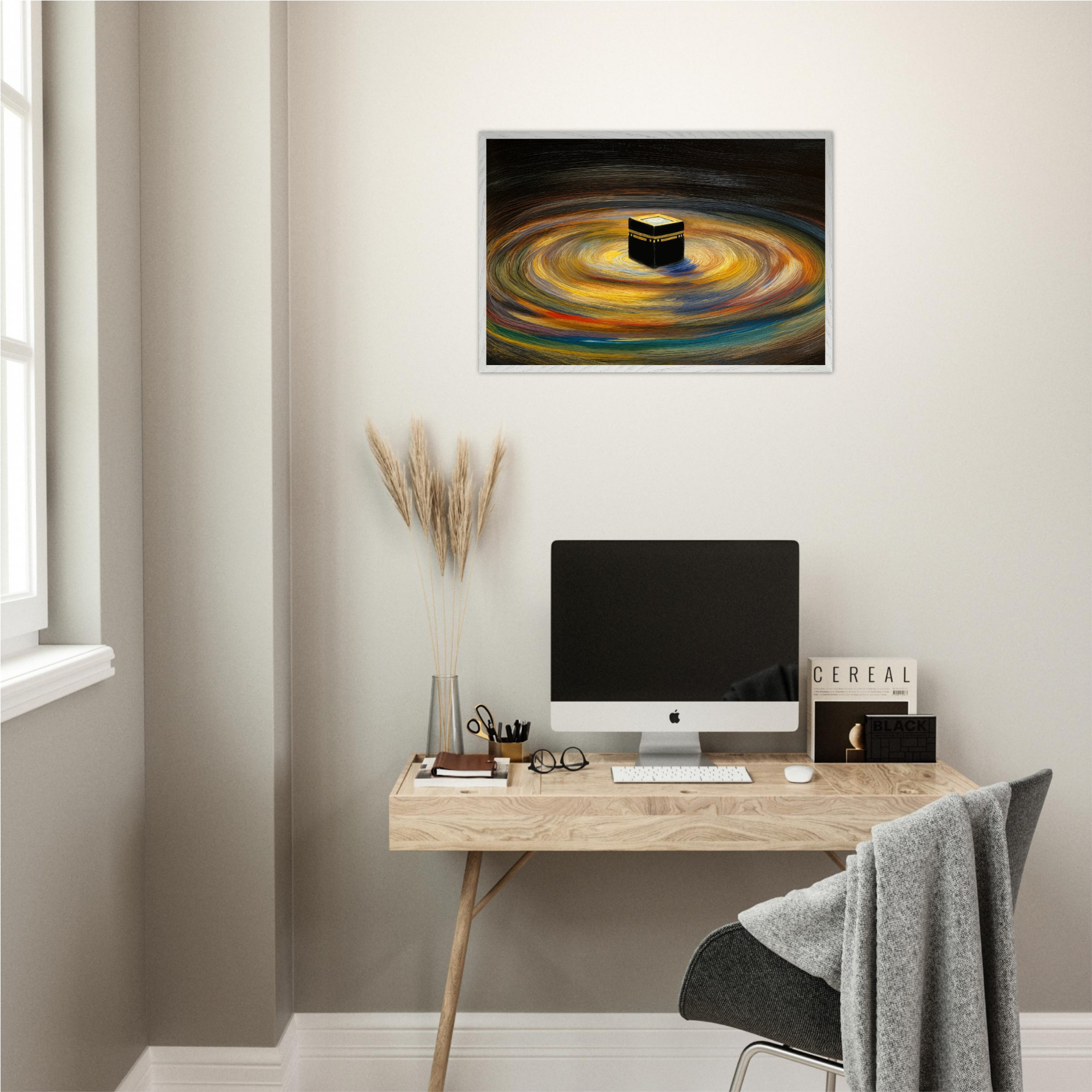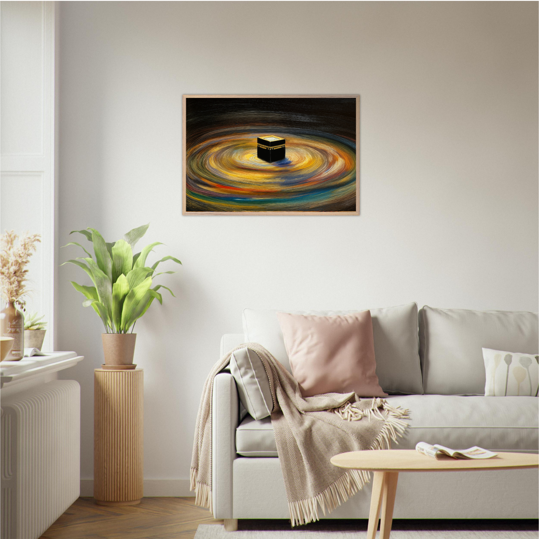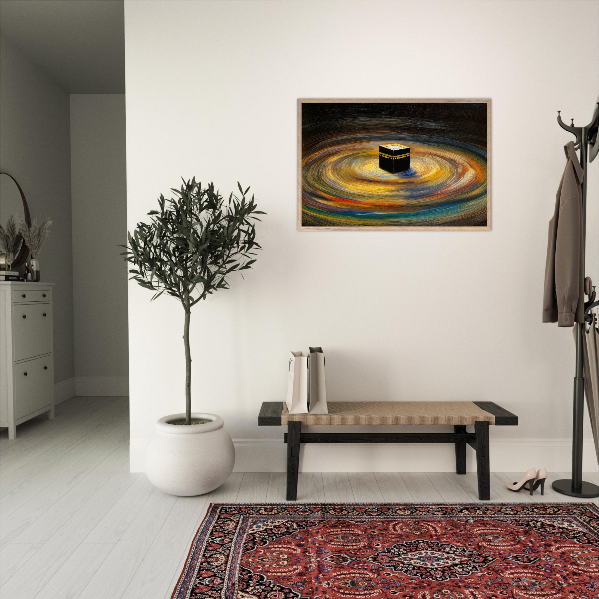 Immerse yourself in 'Eternal Tawaf', a spectacular visualisation of the spiritual magnetism emanating from Islam's most sacred site. This dynamic masterpiece depicts the holy Kaaba surrounded by flowing concentric circles in rich jewel tones, golden amber, deep bronze, and warm sienna, that suggest the eternal movement of tawaf pilgrimage. The swirling motion creates a sense of cosmic energy, representing how the Kaaba serves as the spiritual gravitational center drawing believers from across the globe into unified worship. The painterly brushstrokes add tactile dimension whilst the warm color palette evokes the desert setting and the infinite nature of devotion. Perfect for contemporary Muslim homes seeking powerful statement art that celebrates the unifying force of pilgrimage and the eternal nature of spiritual seeking.