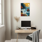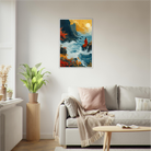 Experience 'Seeker's Voyage', where traditional Islamic wisdom meets contemporary aesthetics in spectacular fashion. This vibrant piece depicts a solitary figure navigating turbulent waters beneath dramatic skies painted in bold oranges and deep teals, embodying the Quranic verse about signs on the horizon. The vivid style brings youthful energy to timeless spiritual themes, making Islamic contemplation accessible through modern visual language. The stormy seascape represents life's challenges, whilst distant light suggests divine guidance awaiting those who persevere. Perfect for contemporary Muslim homes seeking art that bridges generational gaps, celebrating how Islamic values find fresh expression through diverse artistic mediums.