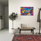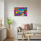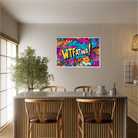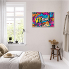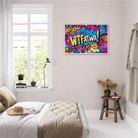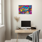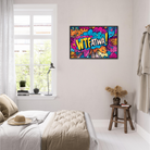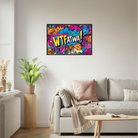 This comic-book inspired Islamic art print that's guaranteed to be your most talked-about wall piece! This vibrant explosion of electric blues, shocking pinks, and golden yellows transforms serious Islamic discourse into pure comic book brilliance. It's for the confident Muslim who appreciates clever irony, loves a good laugh, and isn't afraid to display art that sparks meaningful (and slightly mischievous) conversations. With its bold street art styling and unapologetic energy, this piece proves that Islamic art can be both deeply rooted and delightfully irreverent. Perfect for the modern Muslim home that celebrates faith with a healthy dose of fun, because sometimes the best way to honour tradition is to give it a playful nudge and a knowing smile.