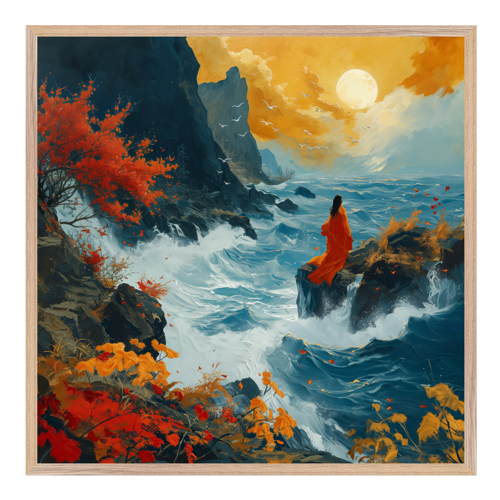 Our ready-to-hang wooden frames, expertly crafted from responsibly sourced oak or ash, showcase rich, distinctive wood grains that enhance each artworkβs beauty.